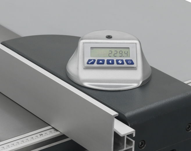 ЭЛЕКТРОННАЯ ЦИФРОВАЯ ИНДИКАЦИЯПараллельный упор может быть оснащен электронной цифровой индикацией. Удачная интеграция всего электронного блока позволяет Вам вращать дисплей на 90°, настраиваемое значение может быть точно считано при любом положении параллельного упора со стороны обслуживания. Дополнительные функции, такие как юстирование, облегчат Вам Вашу повседневную работу. |