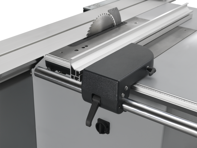 ПАРАЛЛЕЛЬНЫЙ УПОРВ стандартном варианте ширина параллельного упора составляет 800 мм, по желанию 1250 мм. Вы можете легко и точно регулировать параллельный упор при помощи одноручного быстроразъёмного зажима; легко читаемая шкала параллельного упора компактно интегрирована в стол станка. Для выполнения торцовочных работ и для лучшей подачи заготовок алюминиевое расширение параллельного упора может перемещаться назад. Для обработки узких и тонких заготовок при наклоне пильного диска, для удобства работы оператора и во избежание соприкосновения с пильным диском, параллельный упор может быть расположен лицевой стороной вниз. |